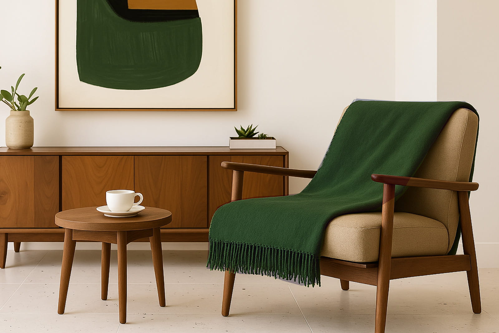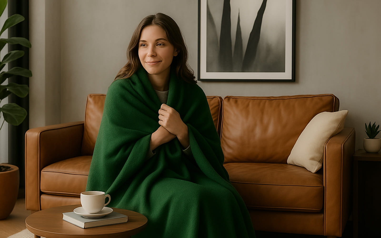 Jego głęboki zielony odcień sprawia, że świetnie komponuje się z każdym stylem aranżacyjnym – od klasycznego po nowoczesny. Możesz wykorzystać go jako narzutę na łóżko, elegancki pled do salonu lub przytulne okrycie na chłodne wieczory.
