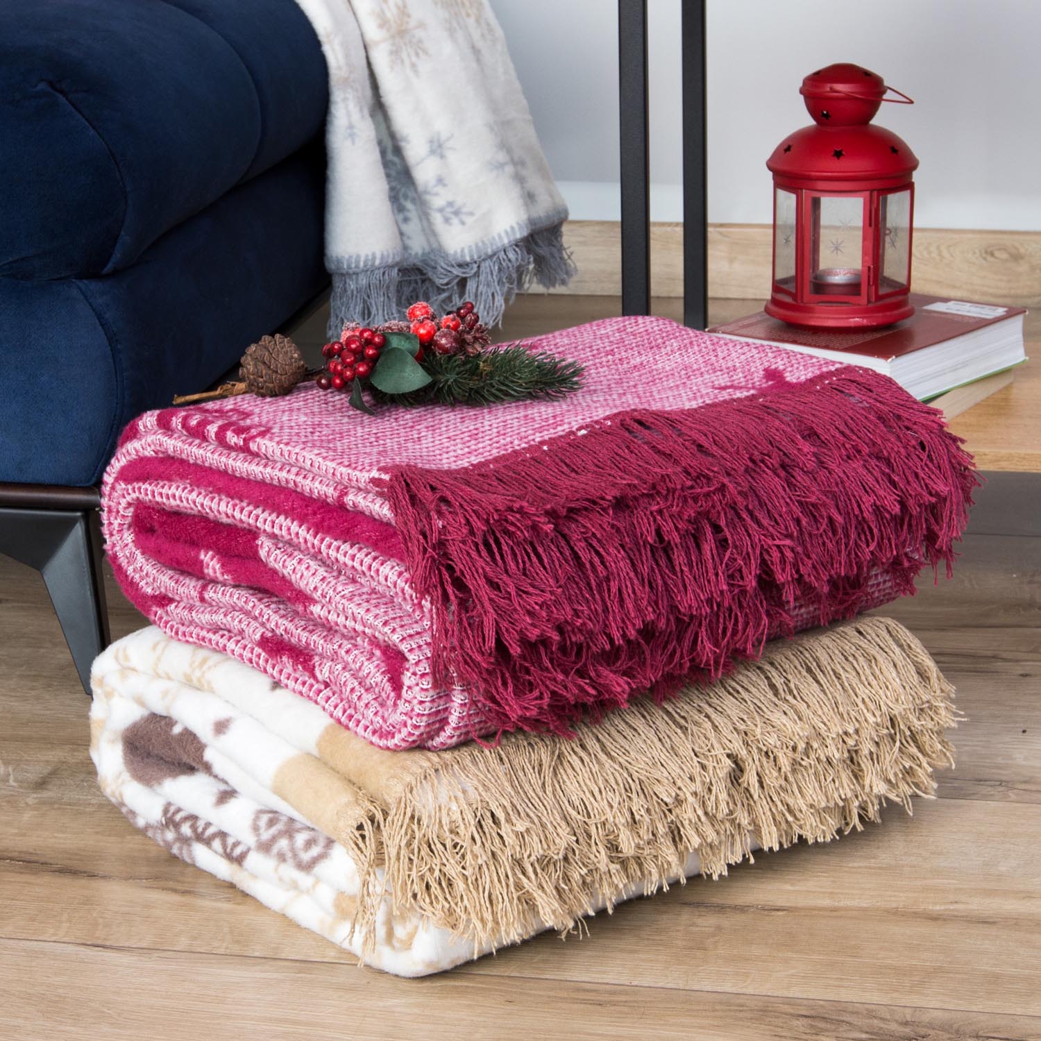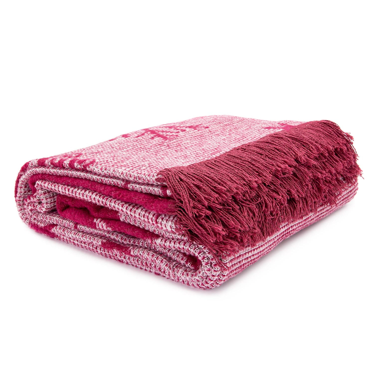 Ten piękny bawełniany koc o wymiarach 150x200 cm to idealny dodatek do twojego wnętrza na okres świąteczny. Wzór w kolorze bordowym przedstawiający świąteczne motywy dodaje atmosfery i ciepła każdemu pomieszczeniu.