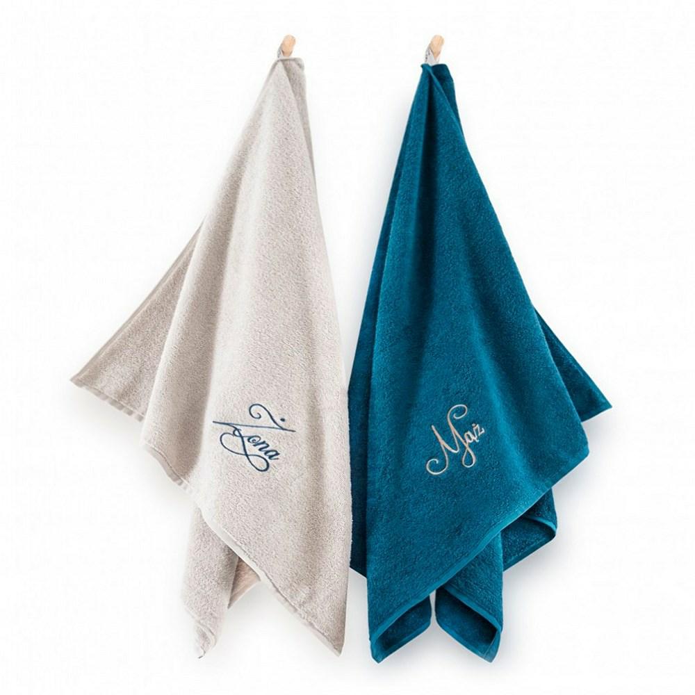 Komplet ręczników w pudełku 2 szt Mąż Żona beżowy turkusowy 70x130 8462 Zwoltex