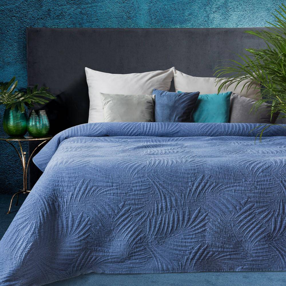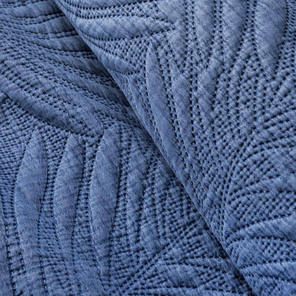 Narzuta dekoracyjna 170x210 Jednobarwna Niebieska Stone idealnie wkomponuje się w każde wnętrze. Zapewnia komfort użytkowania, jest gwarancją najwyższej jakości i zadowolenia. Materiał z jakiego jest wykonana przypominającego do złudzenia tkaninę bawełnianą. Jest miękka, przyjemna w dotyku, a wzór liści pikowany jest metodą hot press na całej powierzchni. Narzuta może być też używana jako letnia kołdra w upalne dni. Starannie wykończona narzuta jest idealnym pomysłem na prezent.