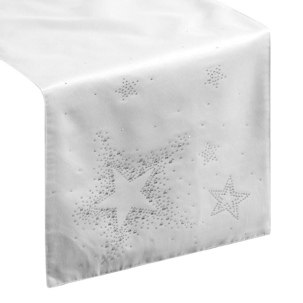 Obrus świąteczny bieżnik Livvi 35x180 Połyskujący Biały Srebrny Gwiazdki Cekiny jest ozdobą i dopełnieniem każdego stołu na święta. Wyróżnia się modnym wzornictwem, wysoką jakością i dokładnym wykonaniem. Będzie się cudownie prezentował w tradycyjnych wnętrzach, jak i w nowocześnie urządzonych pomieszczeniach. Z pewnością doda on wiele uroku jak i umili wszystkim spędzone chwile przy wspólnym świątecznym spotkaniu. Bieżnik jest bardzo praktyczny. Może posłużyć jako samodzielna ozdoba, lub nakładka na obrus. Będzie on doskonałą i niepowtarzalną ozdobą podkreślającą uroczysty charakter Świąt Bożego Narodzenia.