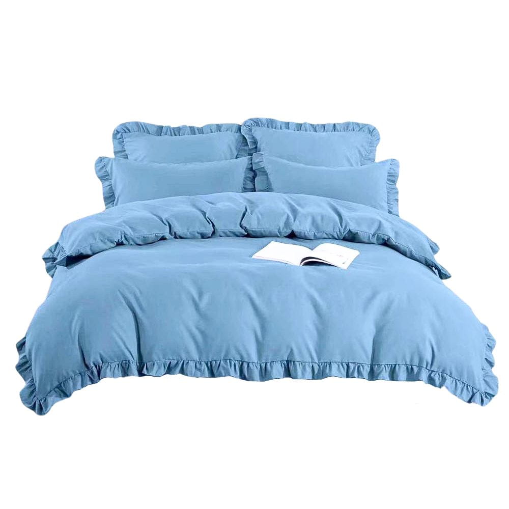 Pościel 160x200 3cz z falbanką niebieska Iris 08