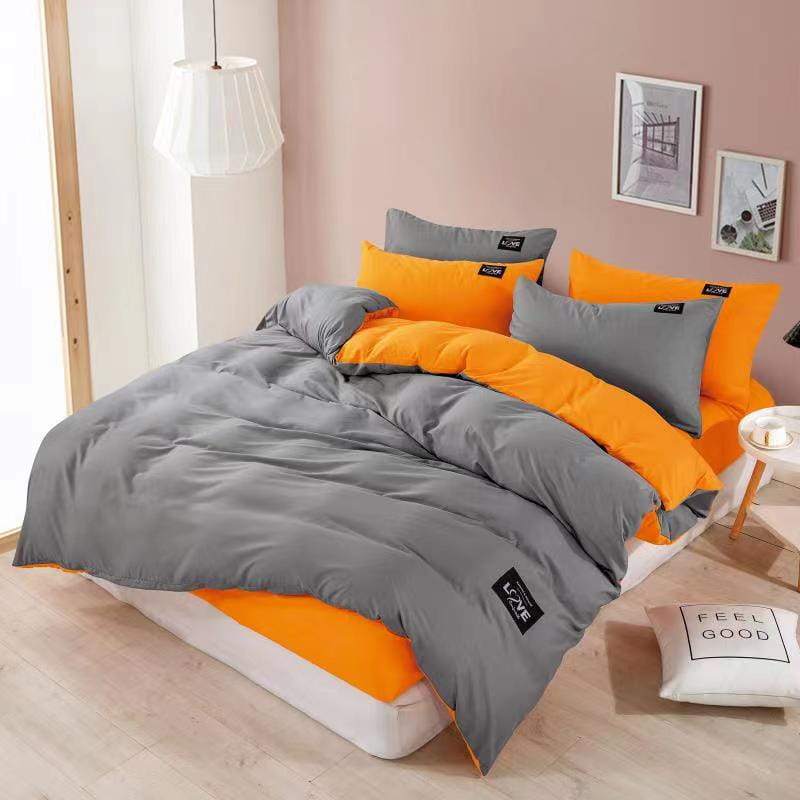 Pościel Dwustronna Elena 356 200x220 4 części szara pomarańczowa