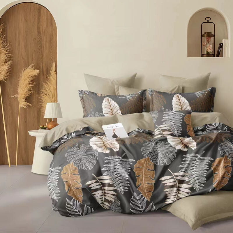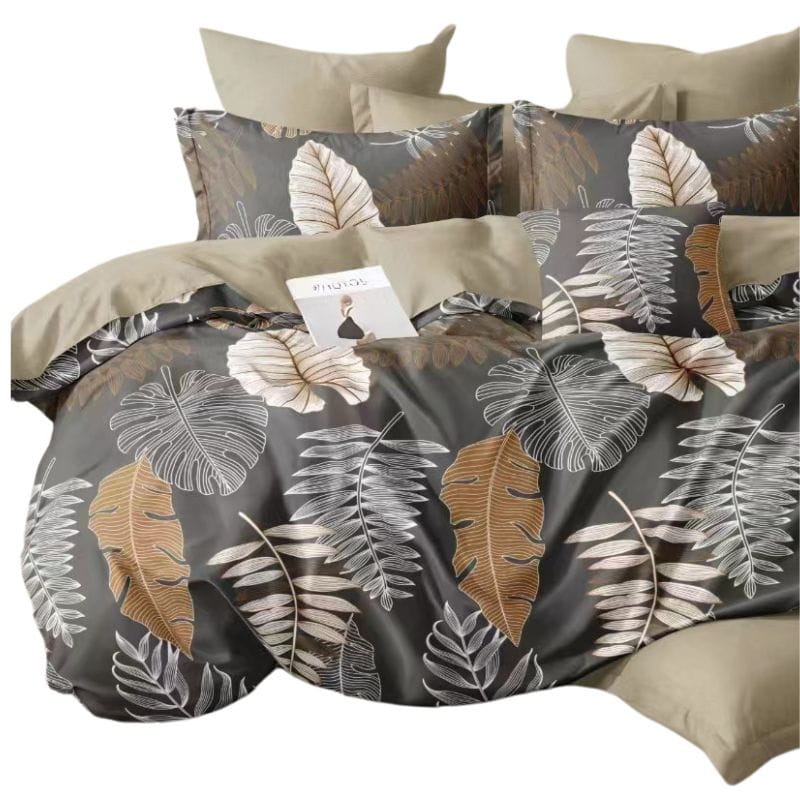 Pościel Satynowa z Mikrofibry 200x220 Elena Liście Szary 536 4cz
