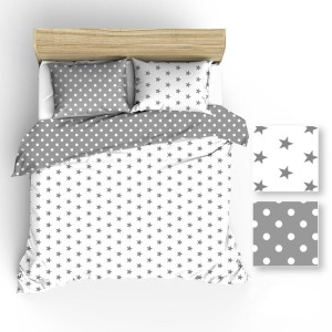 Pościel bawełniana 100x135 dwustronna biała szara Gwiazdki Grochy