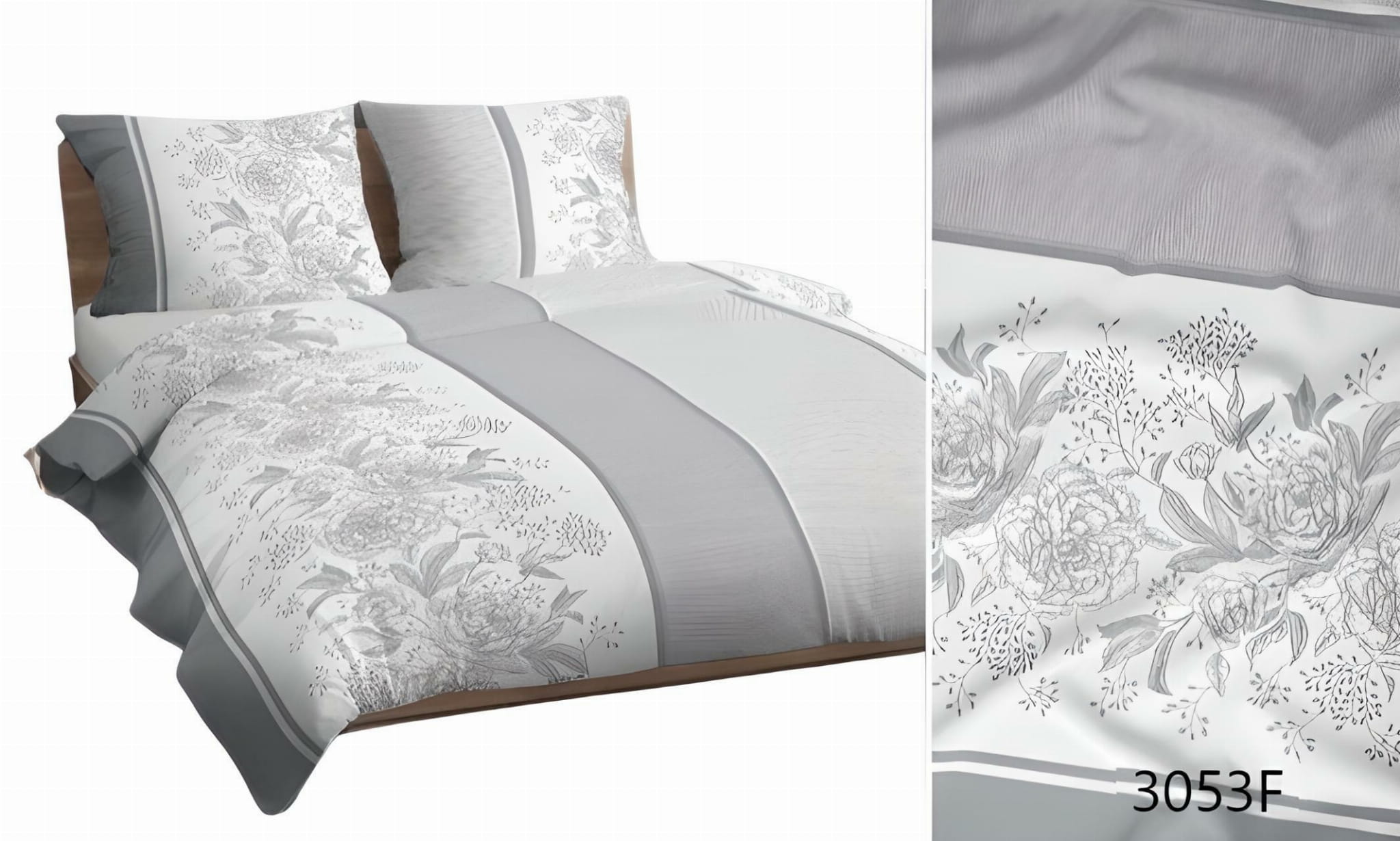 Pościel bawełniana 140x200 Bawełna Max szara kwiaty