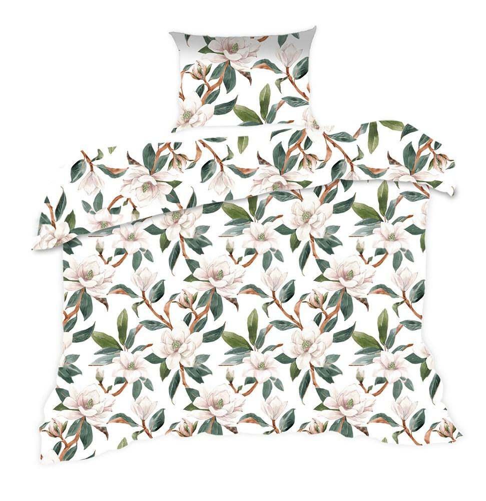 Pościel bawełniana 140x200 Classic biała kwiaty gałązki