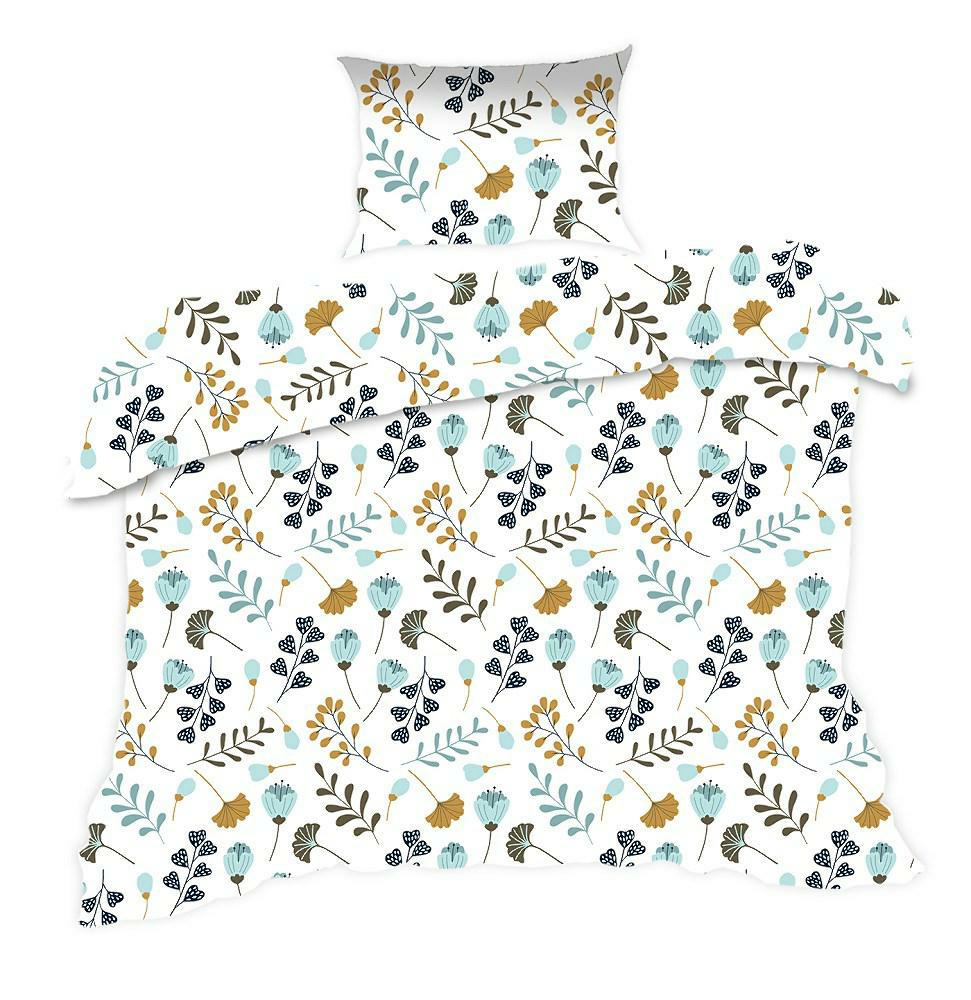 Pościel bawełniana 140x200 Classic biała niebieska beżowa kwiatki gałązki