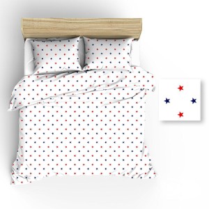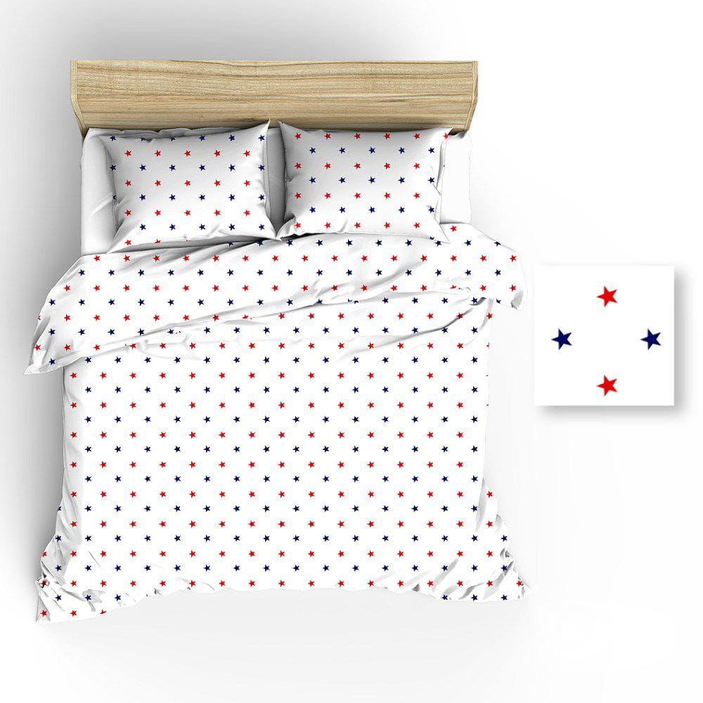 Pościel bawełniana 200x220 Extra biała czerwona granatowa gwiazdki