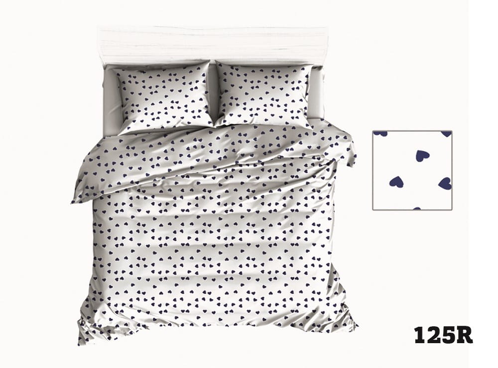 Pościel bawełniana 200x220 Extra biała granatowe serduszka