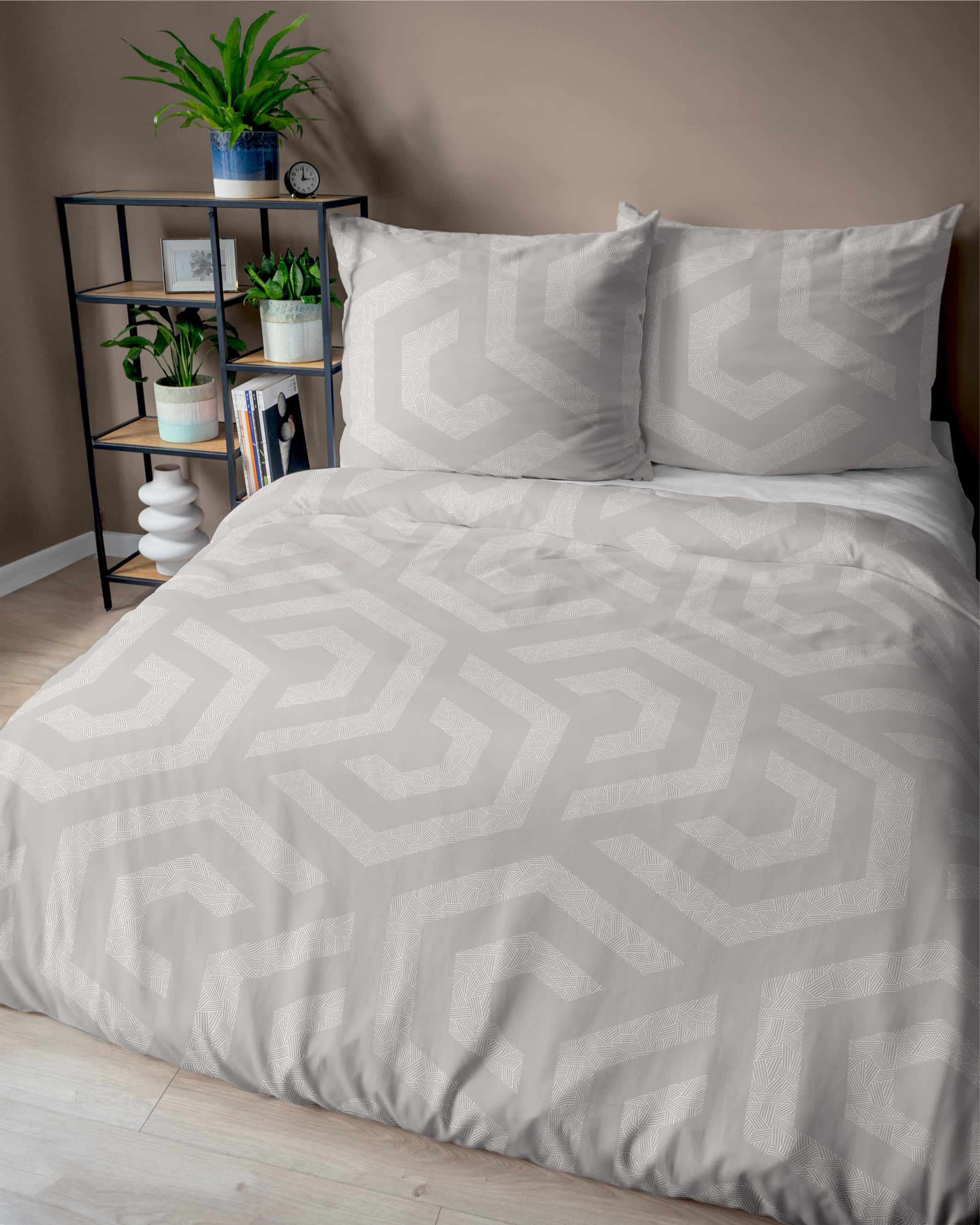 Pościel bawełniana 220x200 Bawełna 32 beżowa geometryczna