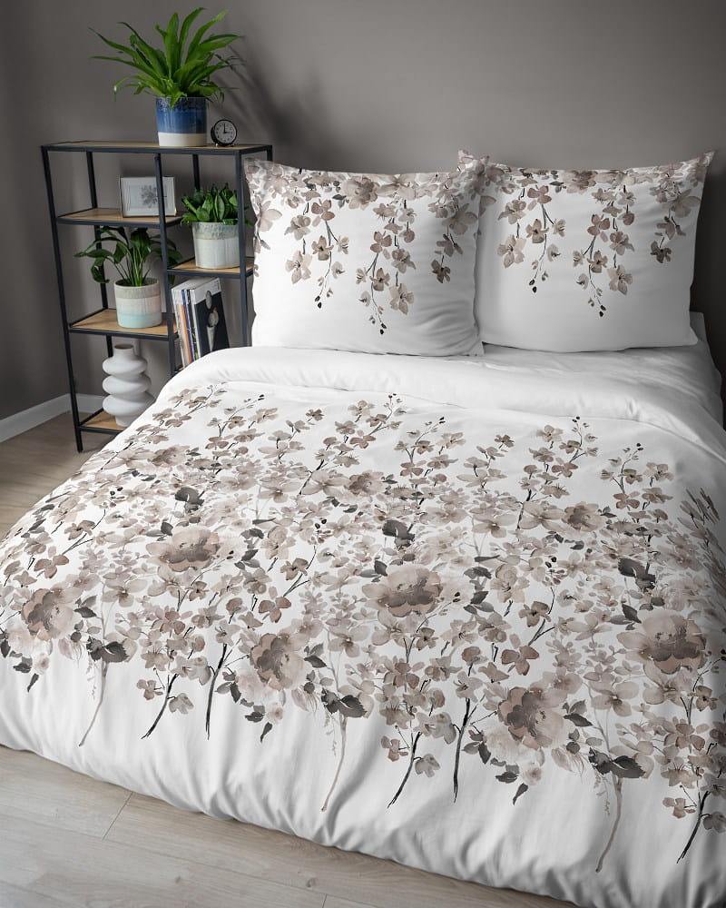 Pościel bawełniana 220x200 Bawełna 48 biała beżowa ciemna kwiatki