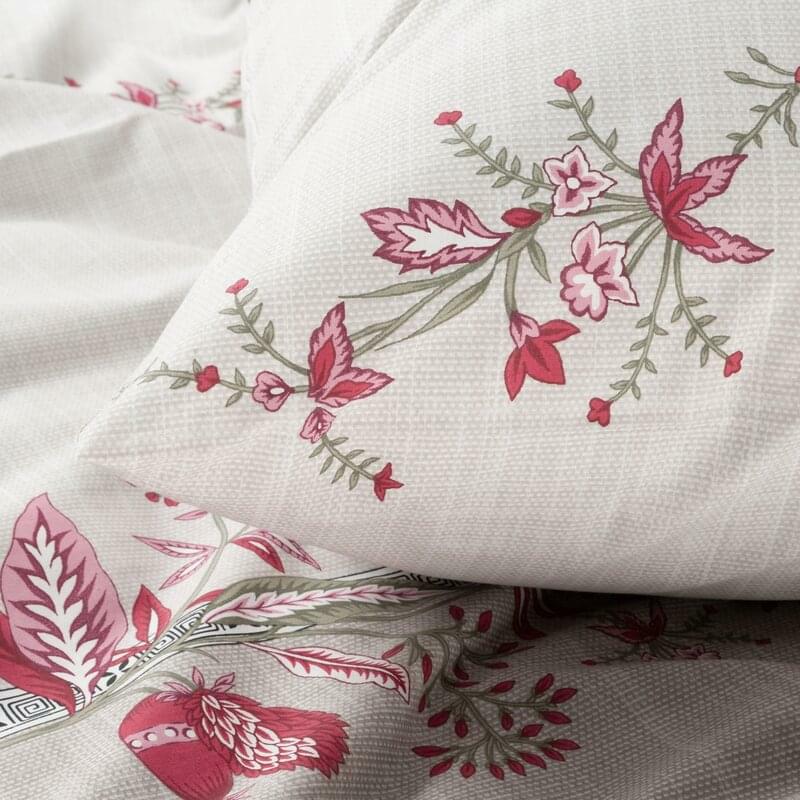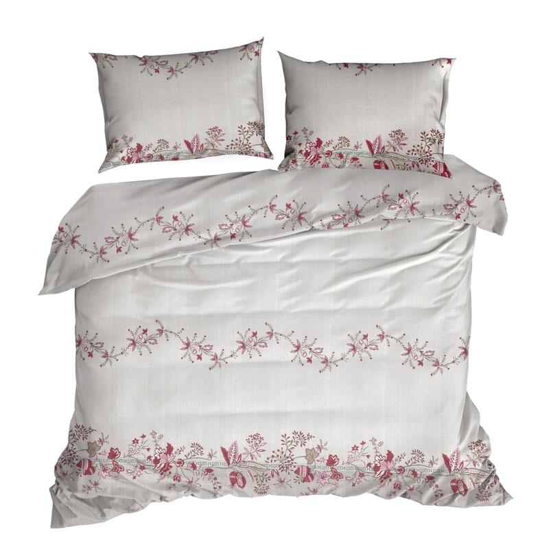 Pościel bawełniana 220x200 Sara 09 beżowa czerwona kwiatki Eurofirany