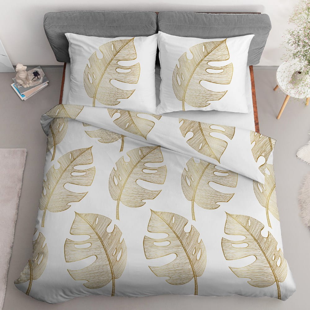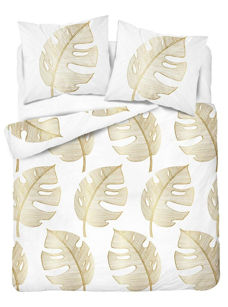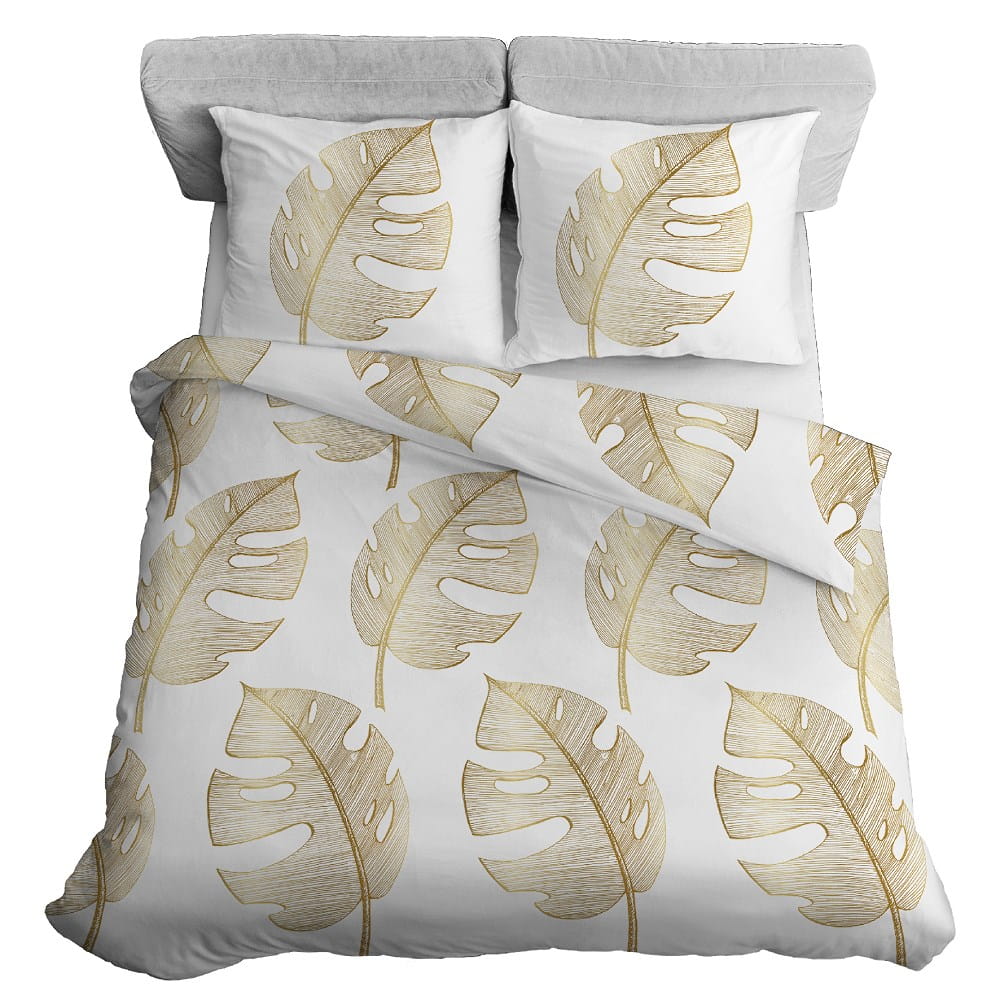 Pościel bawełniana 220x200 biała złota liście bawełna 40