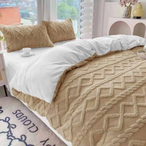 Luksusowy komplet pościeli pluszowej miś 160x210 Inez – komfort i ciepło w Twoim łóżku (beżowa | biała)