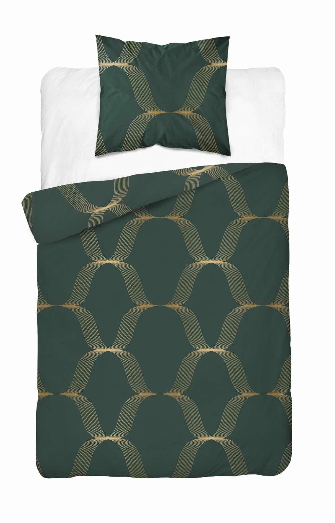 Pościel satynowa 140x200 Home Satin 11 zielona złota ornamenty