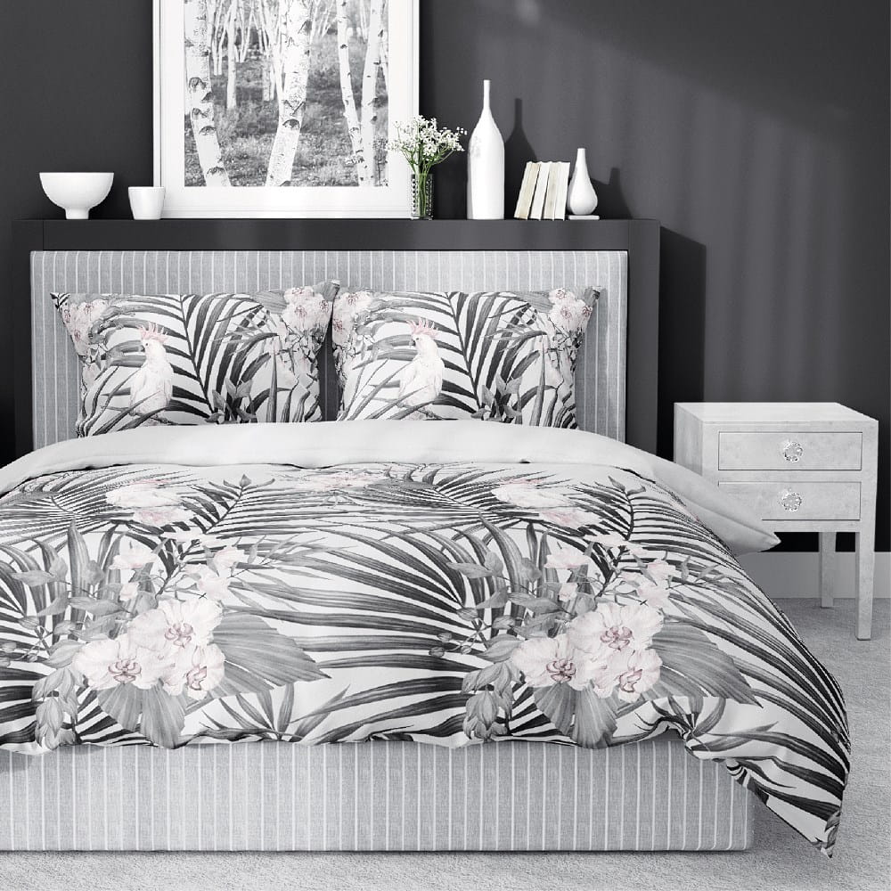 Pościel satynowa 140x200 Home Satin 122 szara liście
