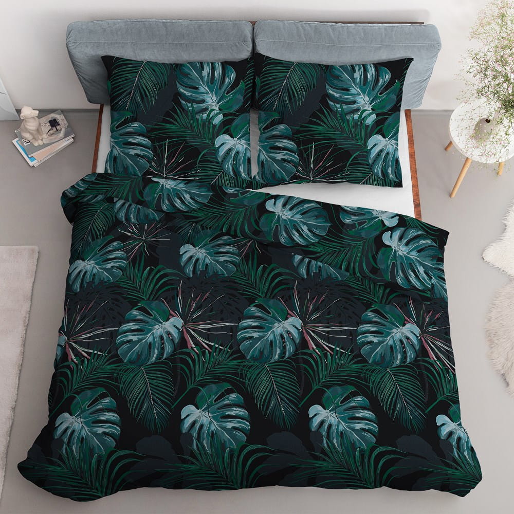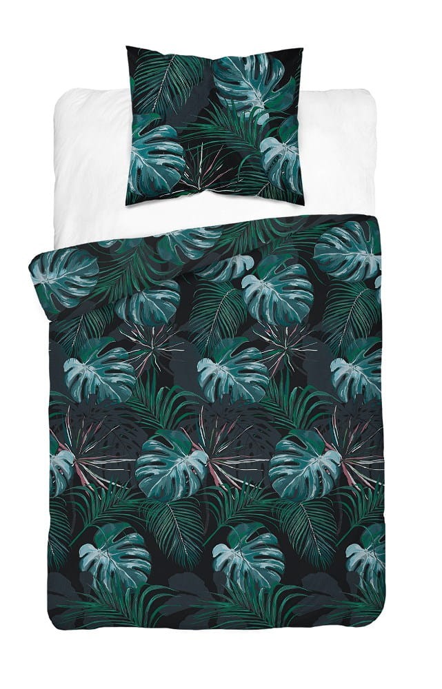 Pościel satynowa 140x200 Home Satin 40 czarna turkusowa liście