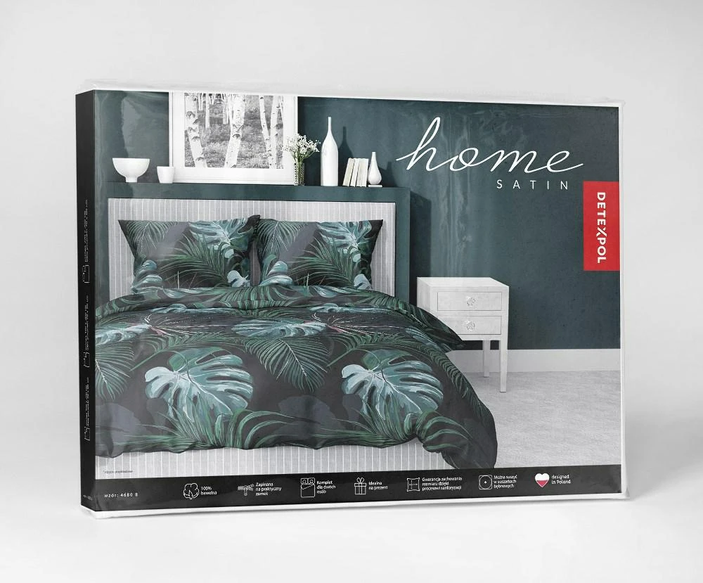 Czarna pościel satynowa 140x200 Home Satin 40 w turkusowe liście to doskonały wybór dla osób, które cenią sobie luksus, komfort oraz elegancję w swojej sypialni. Komplet pościeli został wykonany z bawełny satynowej - 100% bawełny, która zapewnia niezwykłą miękkość, połysk oraz dodaje wnętrzu klasy i wyrafinowania. Satynowy splot tkaniny powoduje, że pościel nie tylko ma elegancki wygląd, ale jest także bardzo trwała i łatwa w pielęgnacji co sprawia, że jest to inwestycja na lata.