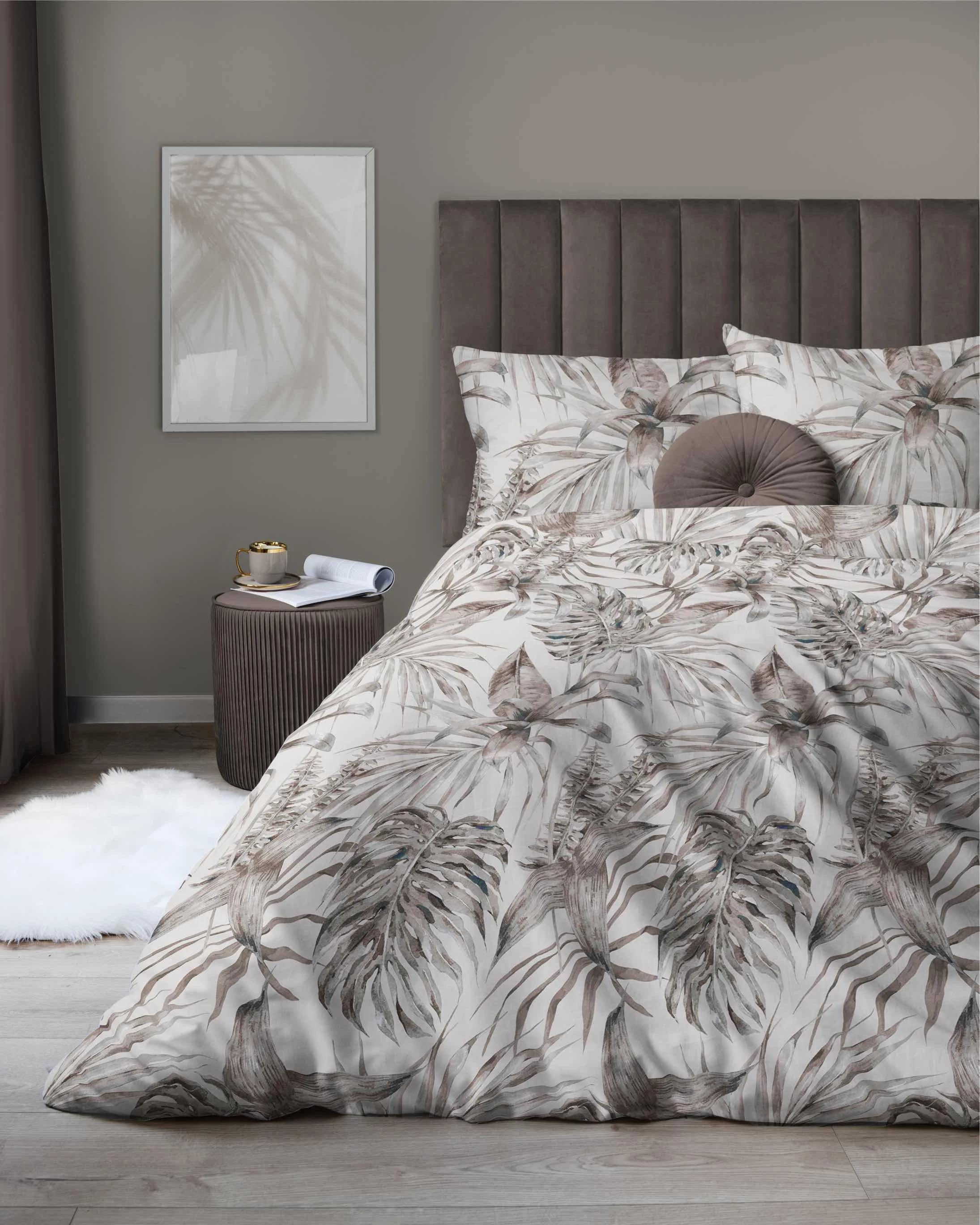 Pościel satynowa 140x200 Home Satin 54 beżowa liście