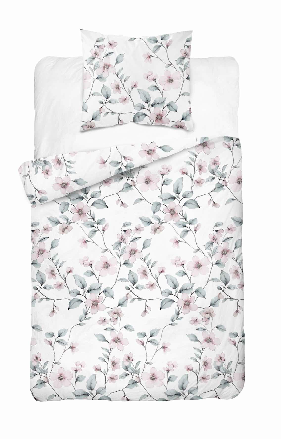 Pościel satynowa 140x200 Home Satin 80 kwiaty biała miętowa pudrowa
