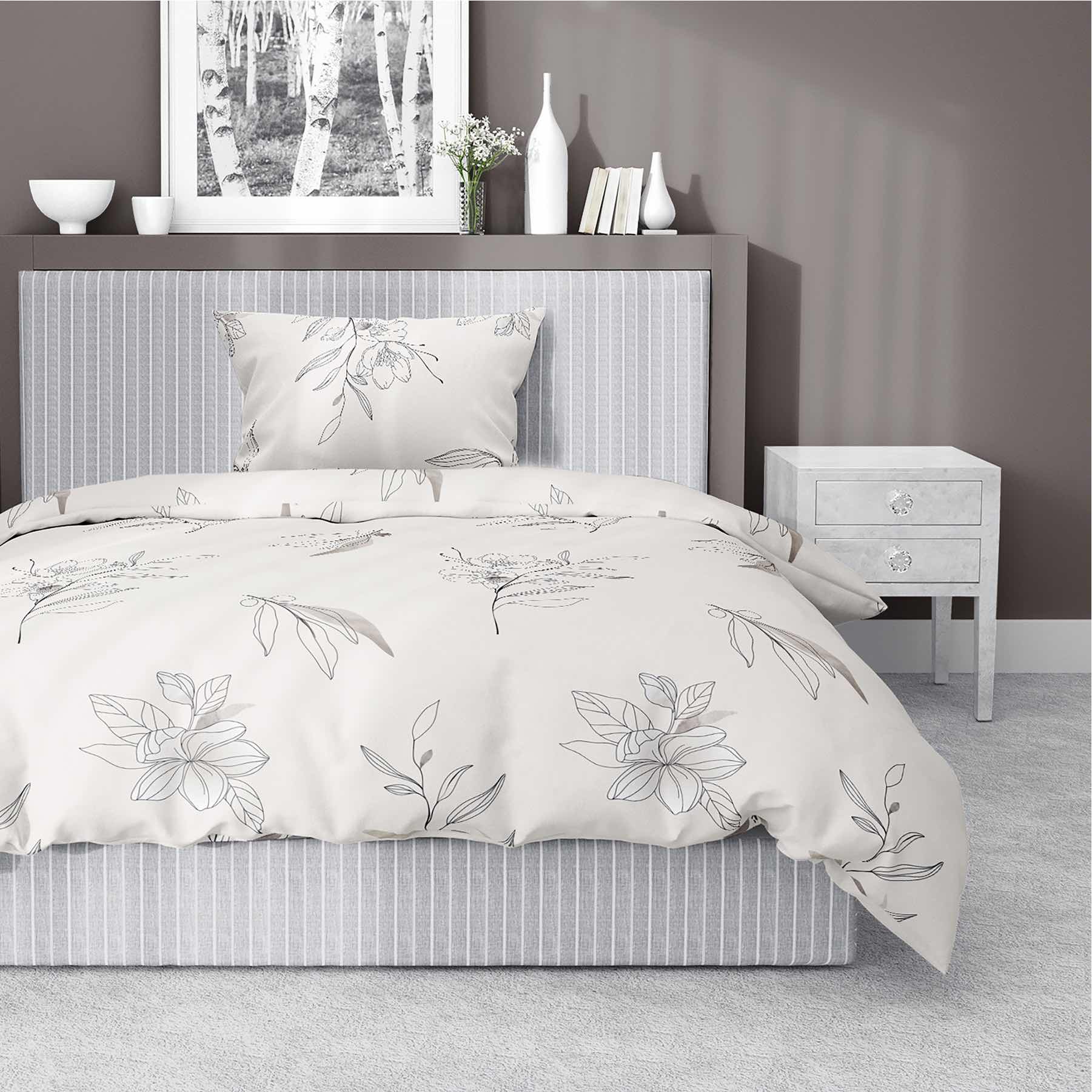 Pościel satynowa 140x200 Home Satin 80 kwiaty kremowa