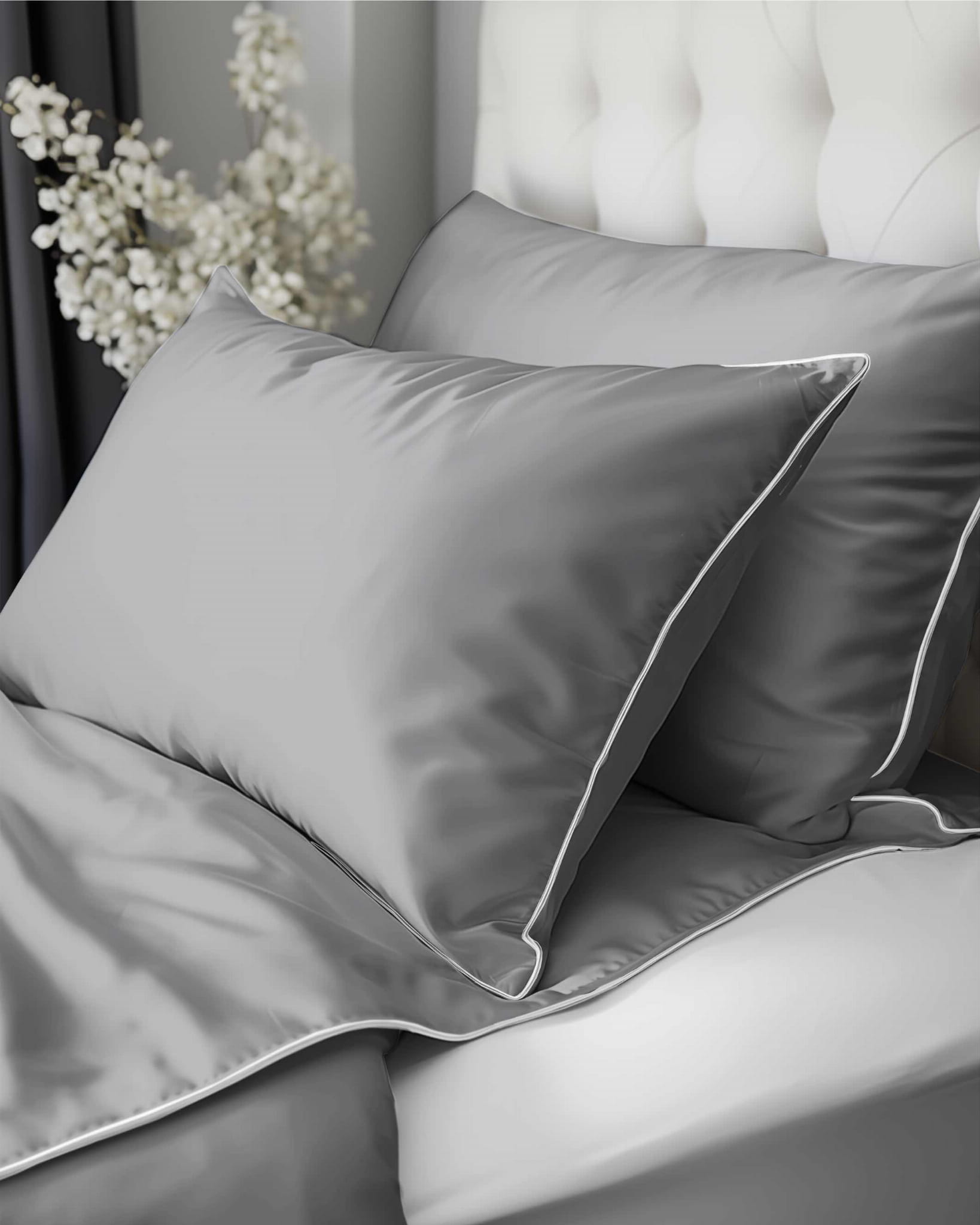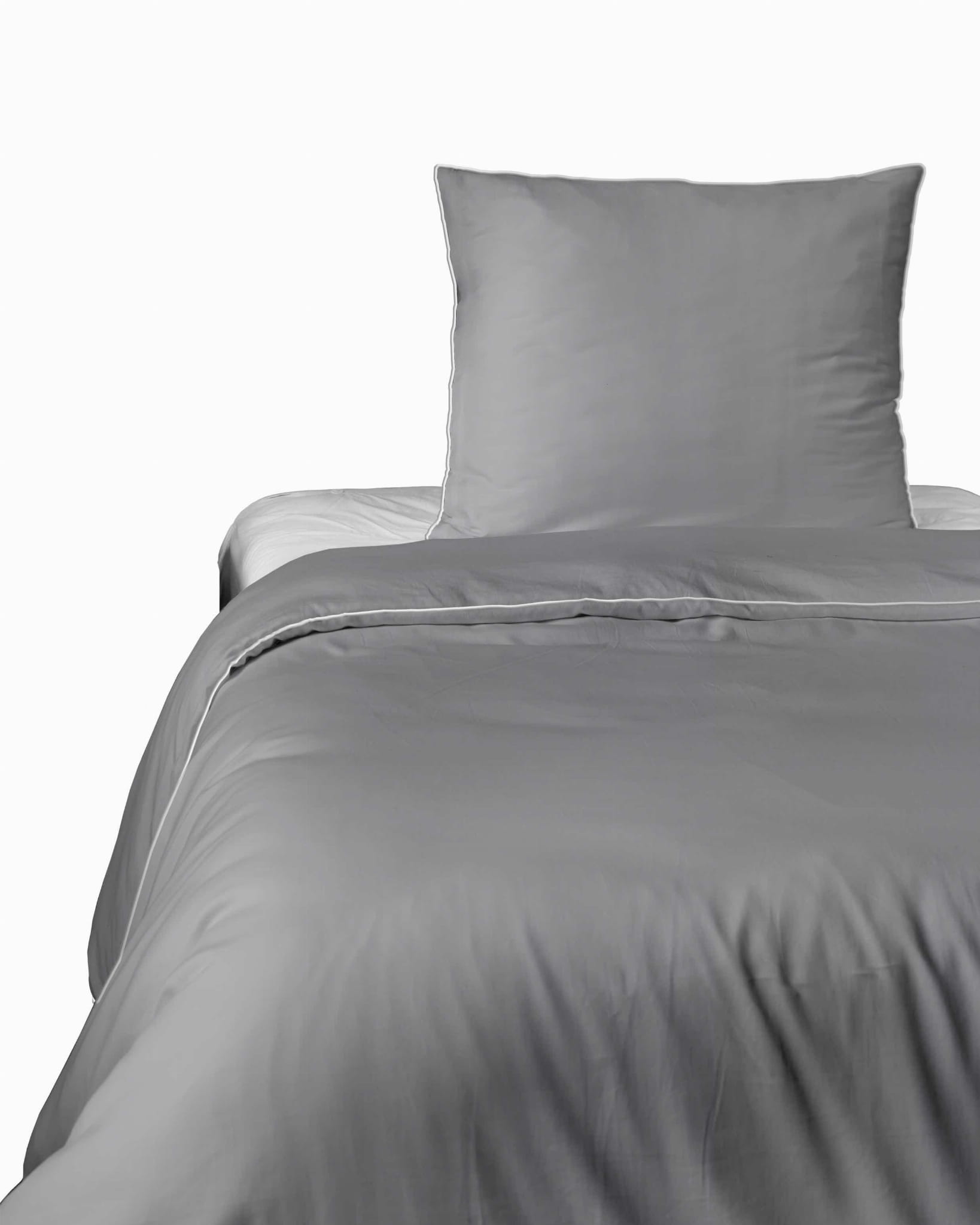 Pościel satynowa 140x200 Mako Satin 62 szara jasna z lamówką