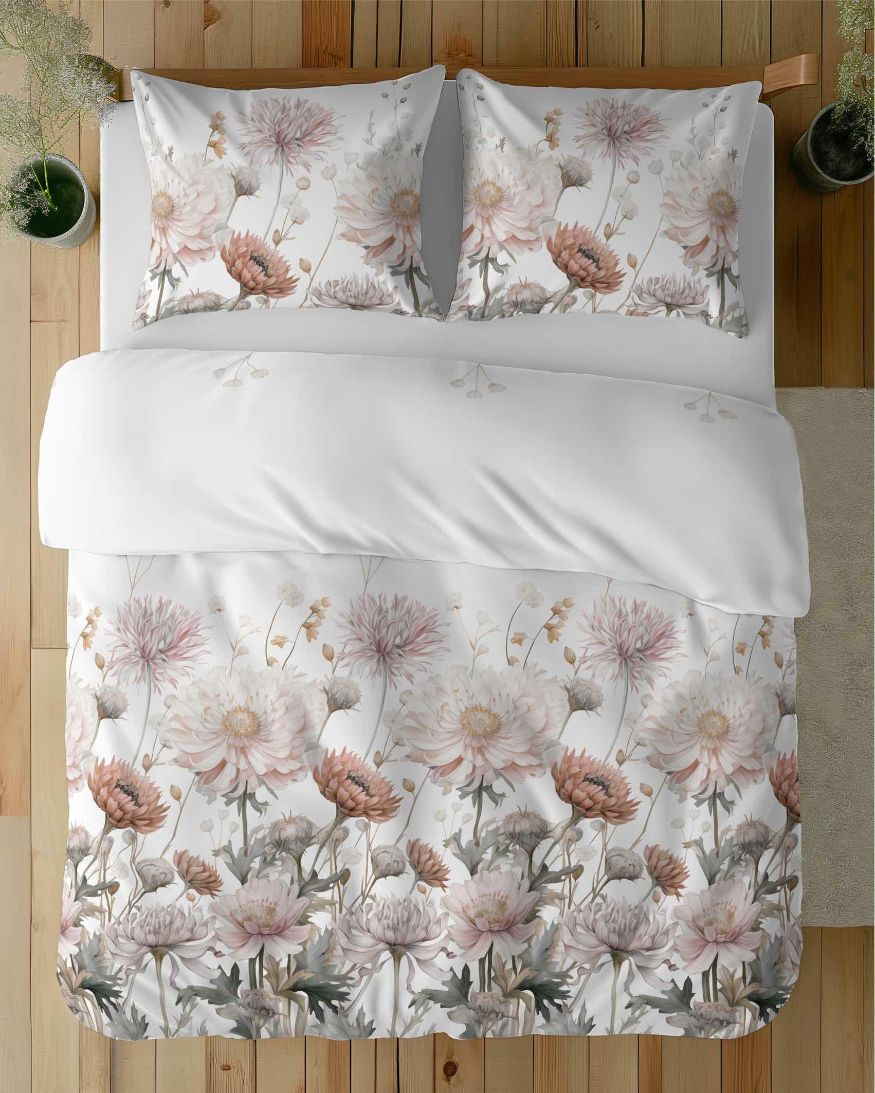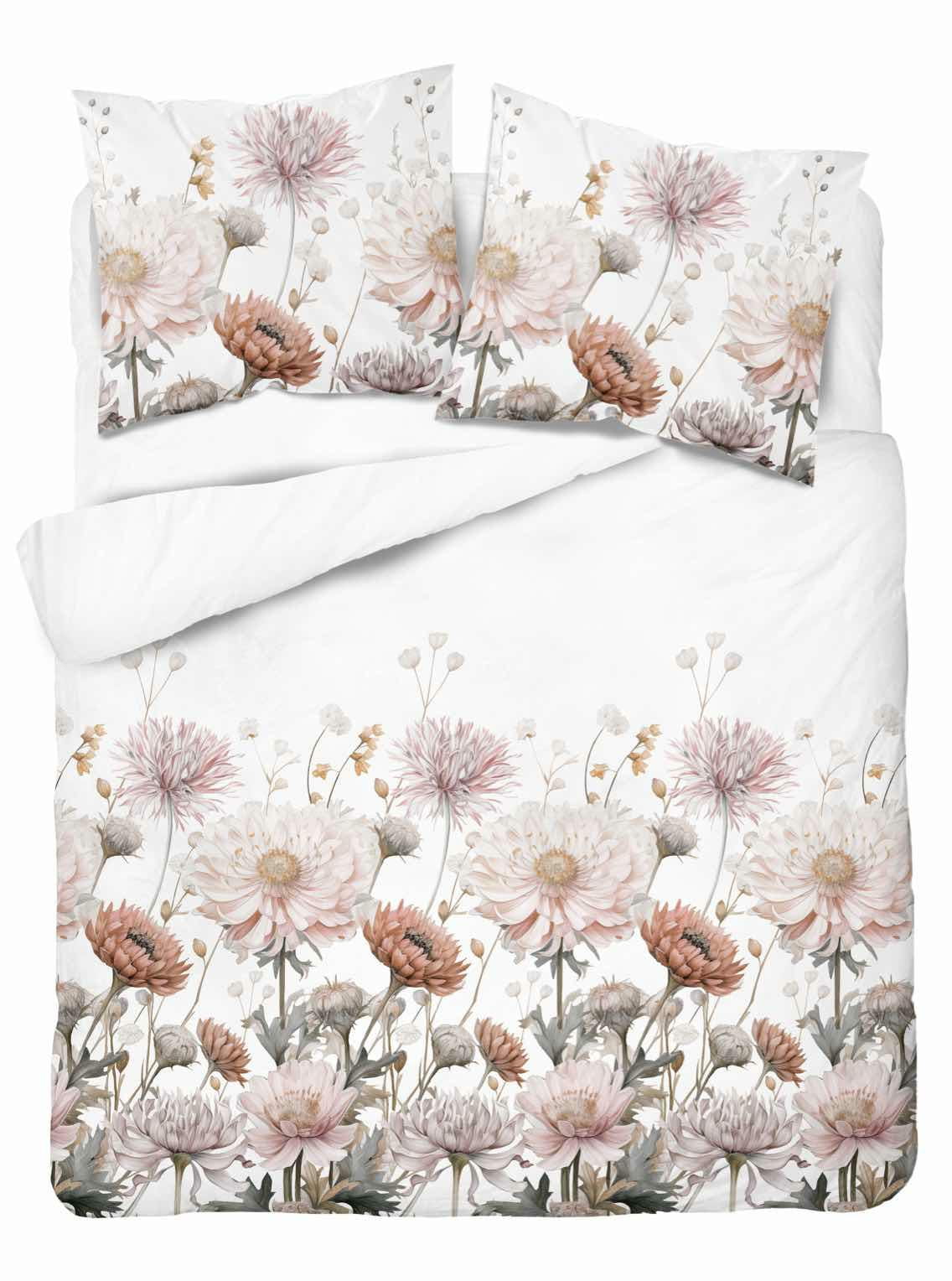 Pościel satynowa 160x200 Home Satin 71 biała w pudrowe kwiaty