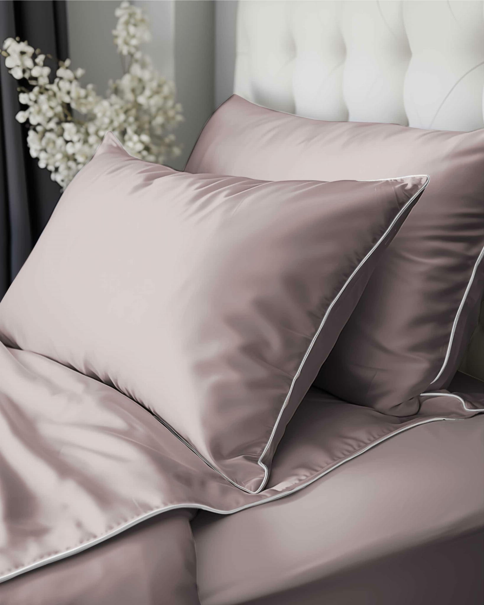 Pościel satynowa 160x200 Mako Satin 62 różowa pudrowa z lamówką