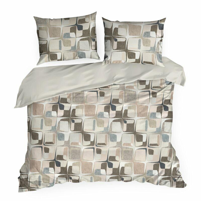 Pościel satynowa 160x200 Spring 36 beżowa geometryczna