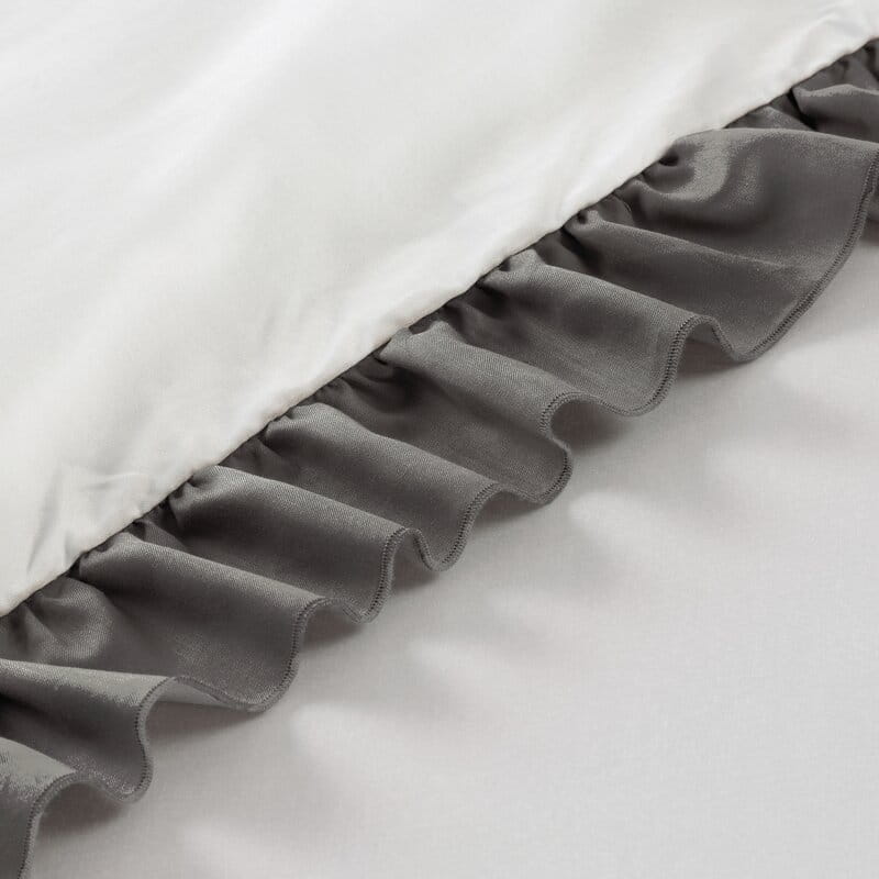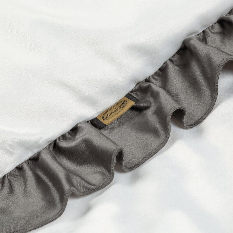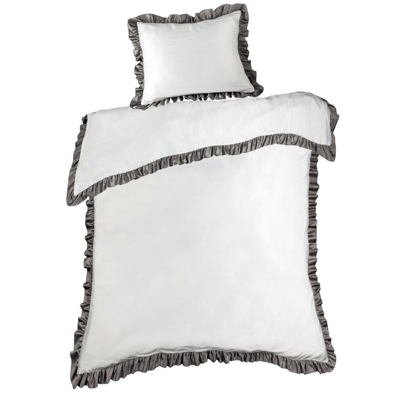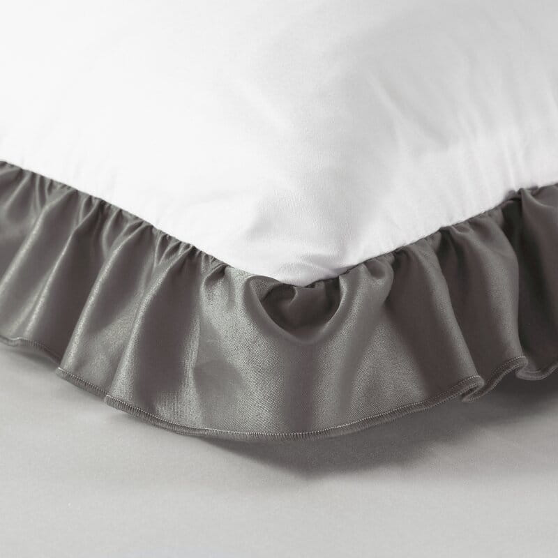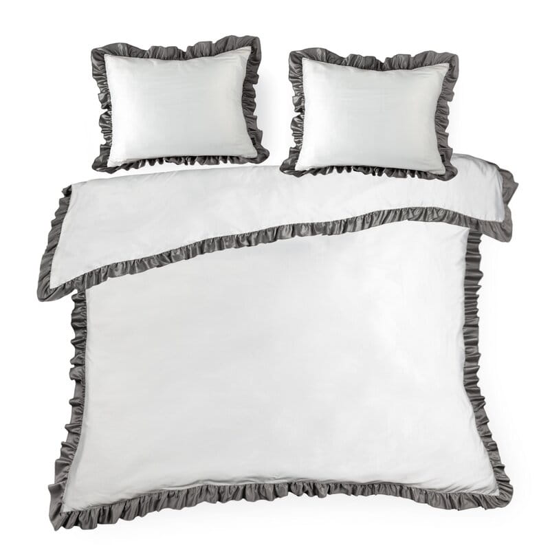 Pościel satynowa 220x200 Eliza biała stalowa zdobiona falbanką Eurofirany