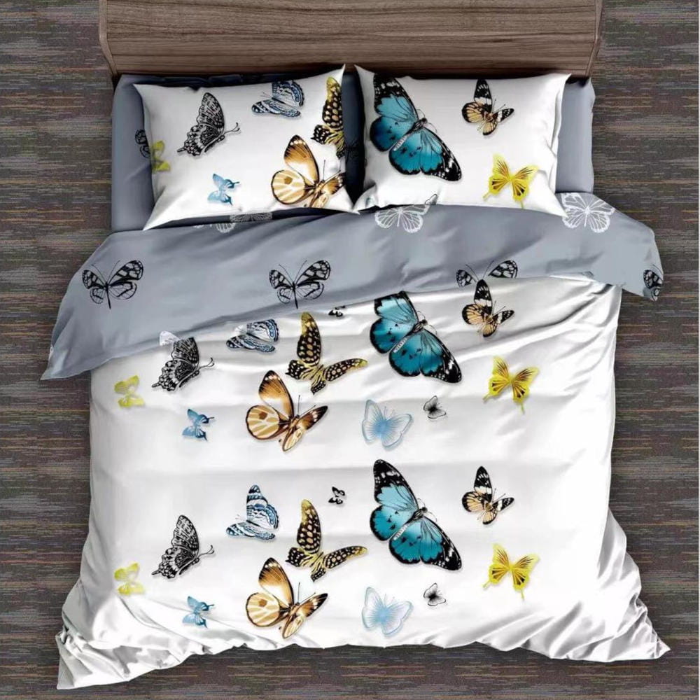 POŚCIEL DWUSTRONNA 200x220 + 2x POSZEWKI 70x80 Elena 312 MOTYLKI