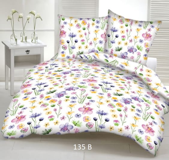 Pościel z kory 140x200 Biała Łąka Kwiatki Kolorowe Bawełna