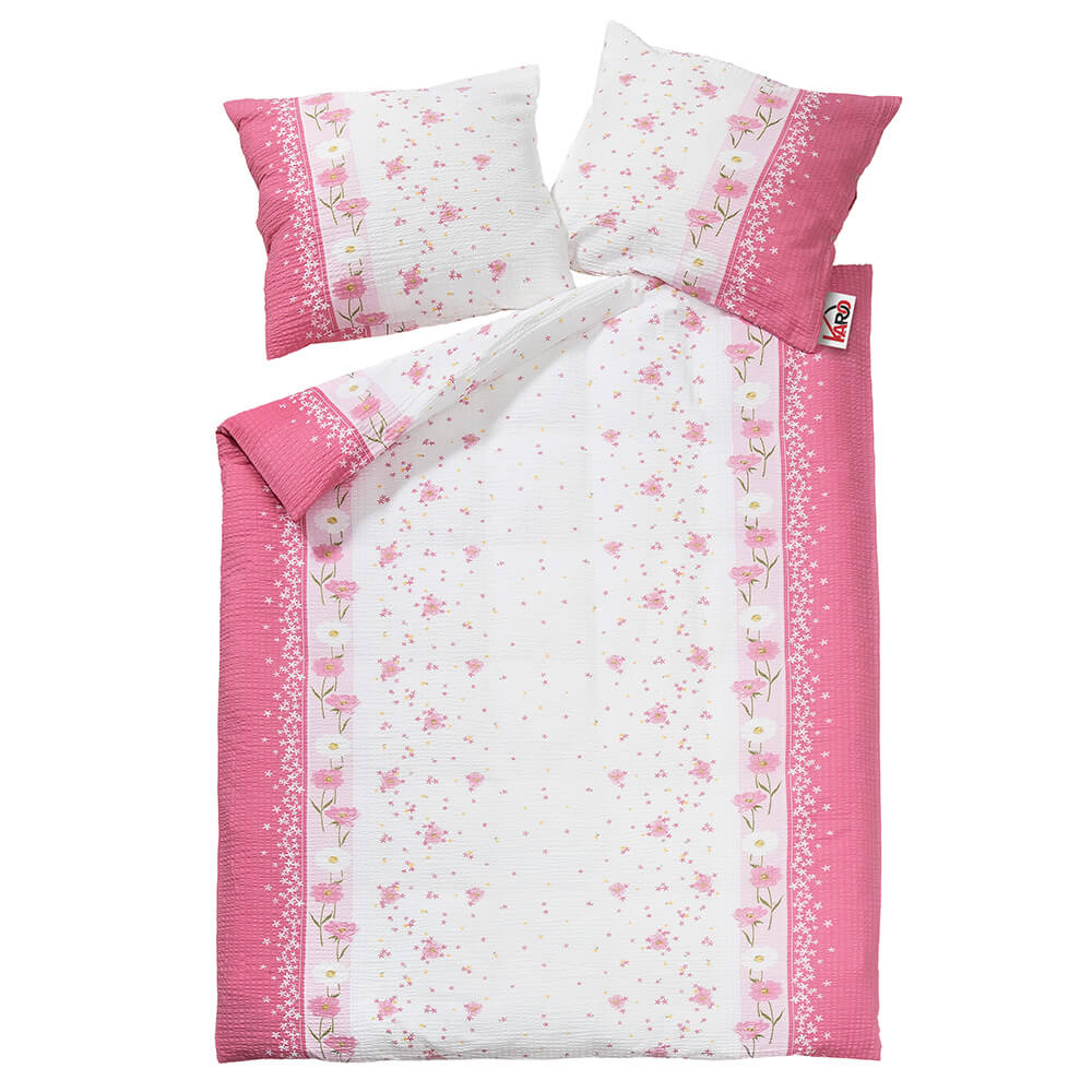 Pościel z kory 200x220 Różowa Biała Kwiaty 100% bawełna na guziki gruba