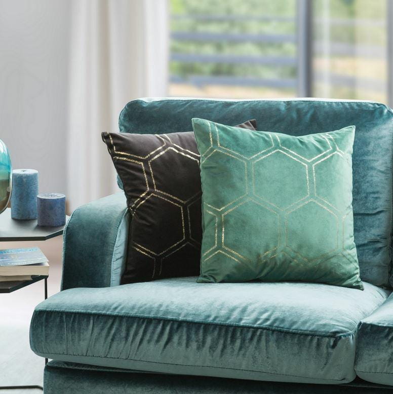Poszewka welwetowa idealnie dopełni wystrój sypialni czy salonu. Nowoczesny design udekoruje każde wnętrze, dodając mu charakteru i elegancji. Tkanina jest miękka co w połączeniu z poduszką lub wypełniaczem daje gwarancję komfortowego odpoczynku. Z jednej strony posiada artystyczny złoty nadruk plastra miodu, z drugiej zaś jest całkowicie gładka. Świetny pomysł na prezent.