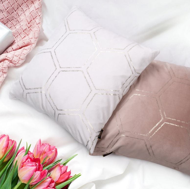 Poszewka welwetowa idealnie dopełni wystrój sypialni czy salonu. Nowoczesny design udekoruje każde wnętrze, dodając mu charakteru i elegancji. Tkanina jest miękka co w połączeniu z poduszką lub wypełniaczem daje gwarancję komfortowego odpoczynku. Z jednej strony posiada artystyczny złoty nadruk plastra miodu, z drugiej zaś jest całkowicie gładka. Świetny pomysł na prezent.