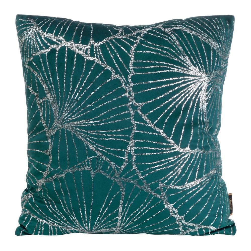Poszewka dekoracyjna 45x45 Blink 39 Liście Miłorzębu Turkusowa Ciemna Srebrna welwetowa