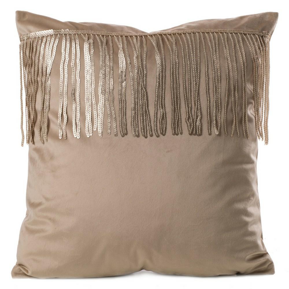 EUROFIRANY POSZEWKA WELWETOWA BEŻOWA JASPER CEKINY DEKORACYJNA 45X45