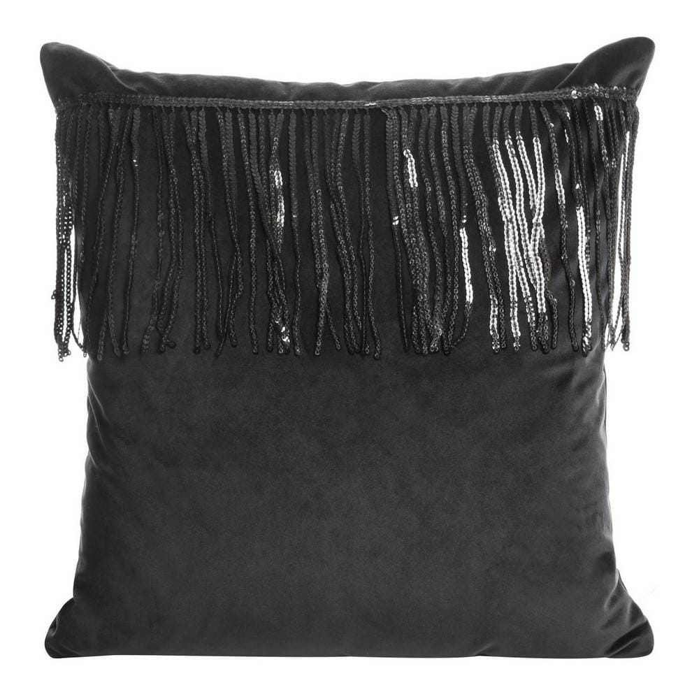 Poszewka dekoracyjna 45x45 Jasper welwetowa Czarna pasmanteria z czarnych cekinów