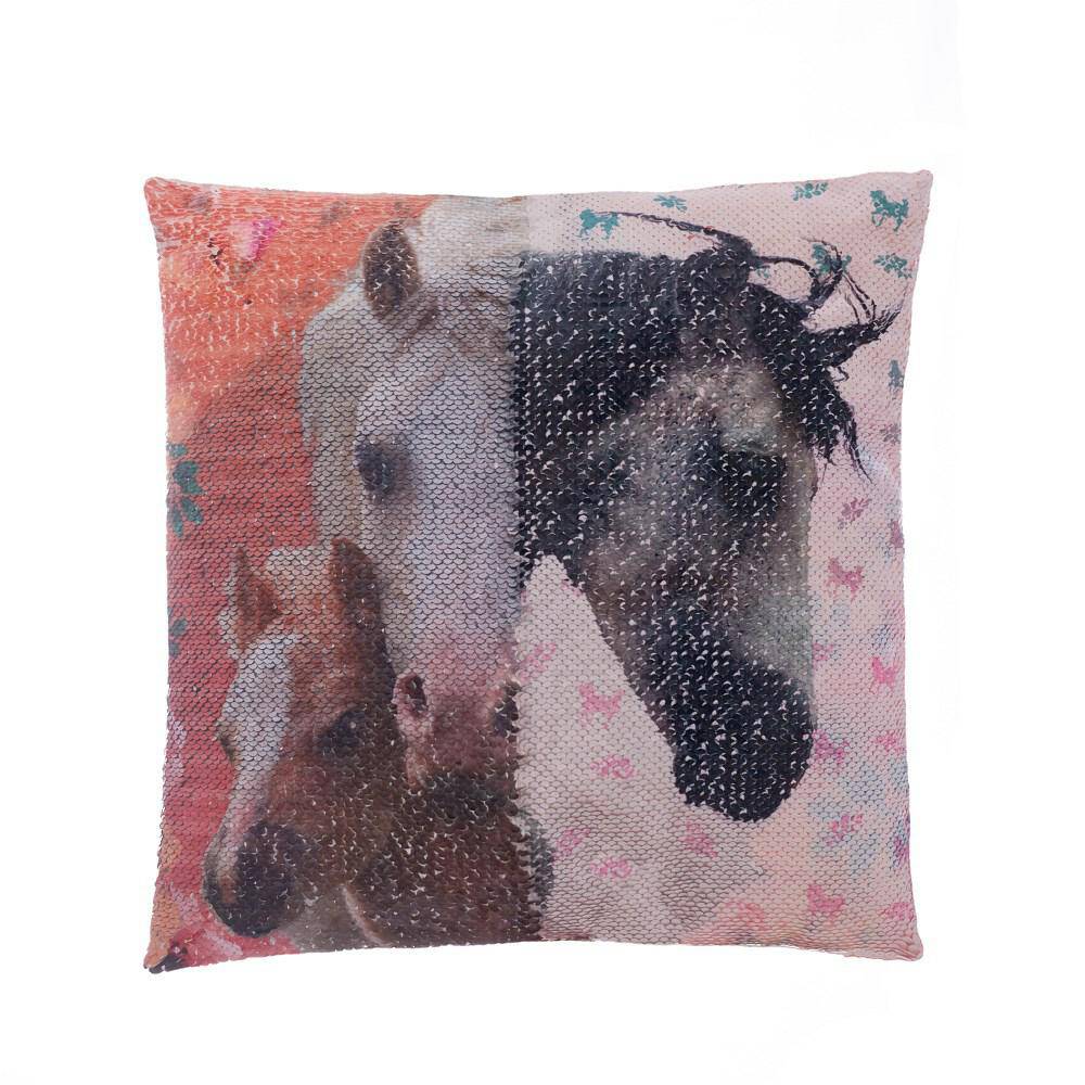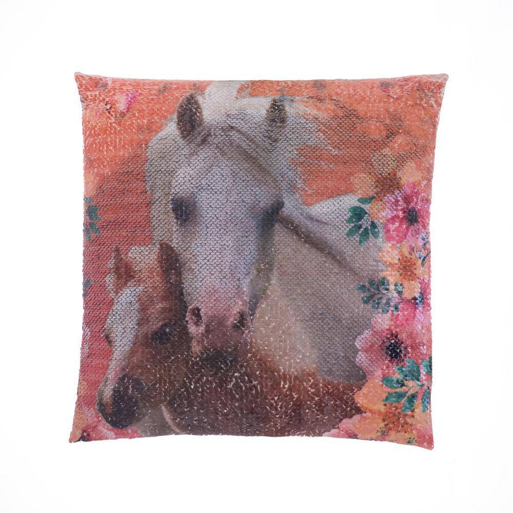 Poszewka z cekinami 40x40 3D Koń Kwiaty