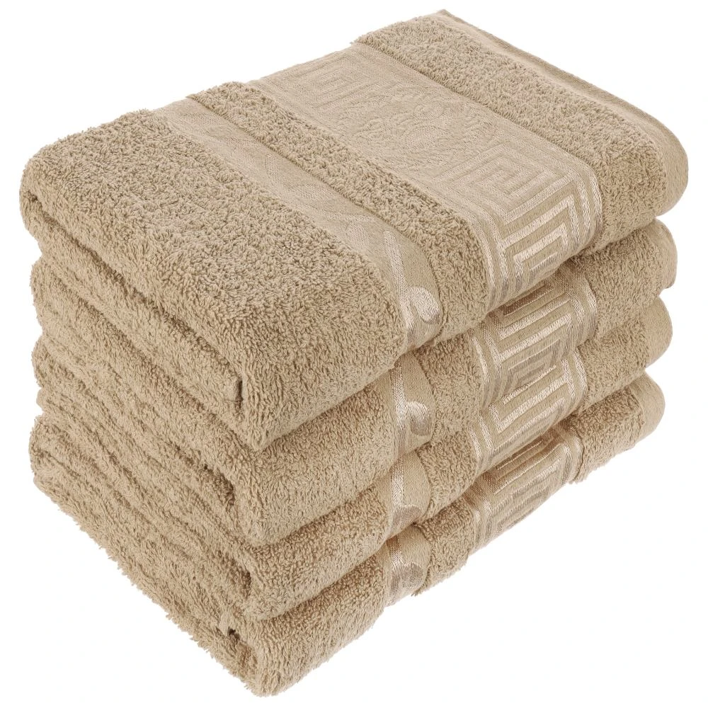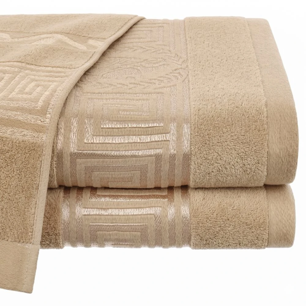 Ręcznik bawełniany 70x140 Aurelia Prestige beżowy 500g/m2 luksusowy, miękki i chłonny WZÓR GRECKI