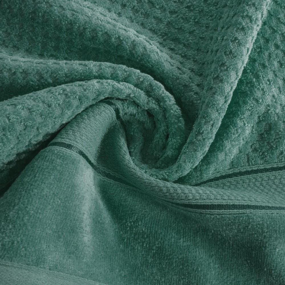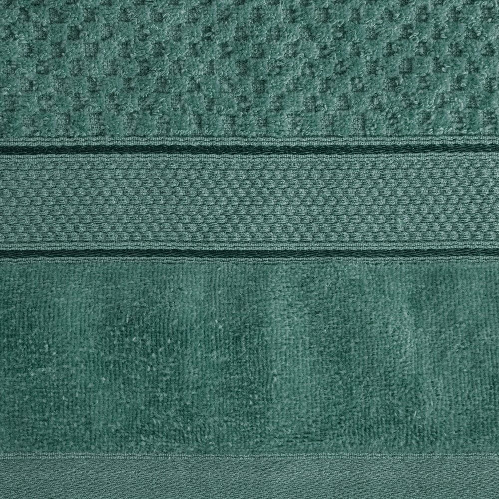 Ręcznik bawełniany 70x140 Jessi zielony ciemny z wytłaczaną krateczką i welurową bordiurą 500g/m2