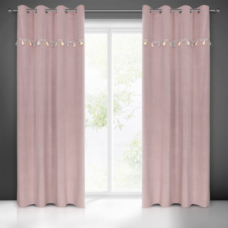 Zasłona 140x250 Kids pudrowa z kolorową aplikacją dla dzieci gotowa na przelotkach Eurofirany