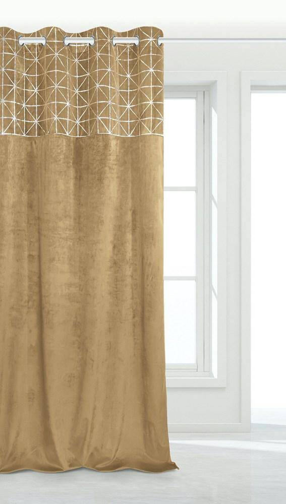 Zasłona gotowa na przelotkach, które umożliwiają szybkie zawieszenie na karniszu.