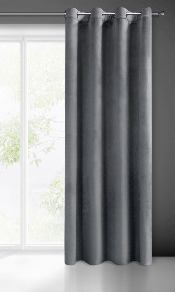 Dodaj wnętrzu wyjątkowy charakter dzięki zasłonie welurowej Melanie w modnym grafitowym kolorze. Elegancki welur o gęstym splocie sprawia, że tkanina jest miękka, aksamitna w dotyku i doskonale układa się na oknie. Gotowa do zawieszenia – przelotki umożliwiają szybkie i wygodne montowanie na karniszu, a także zapewniają idealne fałdowanie materiału.