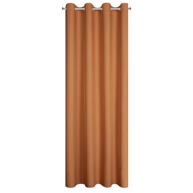 Dodaj wnętrzu wyjątkowy charakter dzięki zasłonie Rita w rudym kolorze. Elegancki splot sprawia, że tkanina jest miękka, aksamitna w dotyku i doskonale układa się na oknie. Gotowa do zawieszenia – przelotki umożliwiają szybkie i wygodne montowanie na karniszu, a także zapewniają idealne fałdowanie materiału.