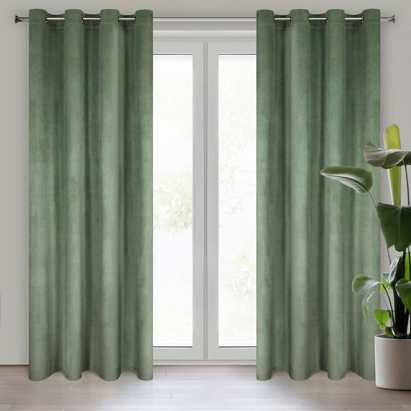 Dodaj wnętrzu wyjątkowy charakter dzięki welurowej zasłonie Rosa w modnym ciemno miętowym kolorze z delikatnym połyskiem. Elegancki welurowy splot sprawia, że tkanina jest miękka, aksamitna w dotyku i doskonale układa się na oknie. Gotowa do zawieszenia – przelotki umożliwiają szybkie i wygodne montowanie na karniszu, a także zapewniają idealne fałdowanie materiału.