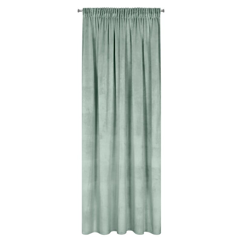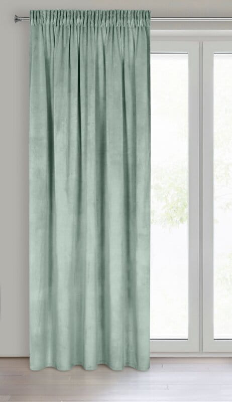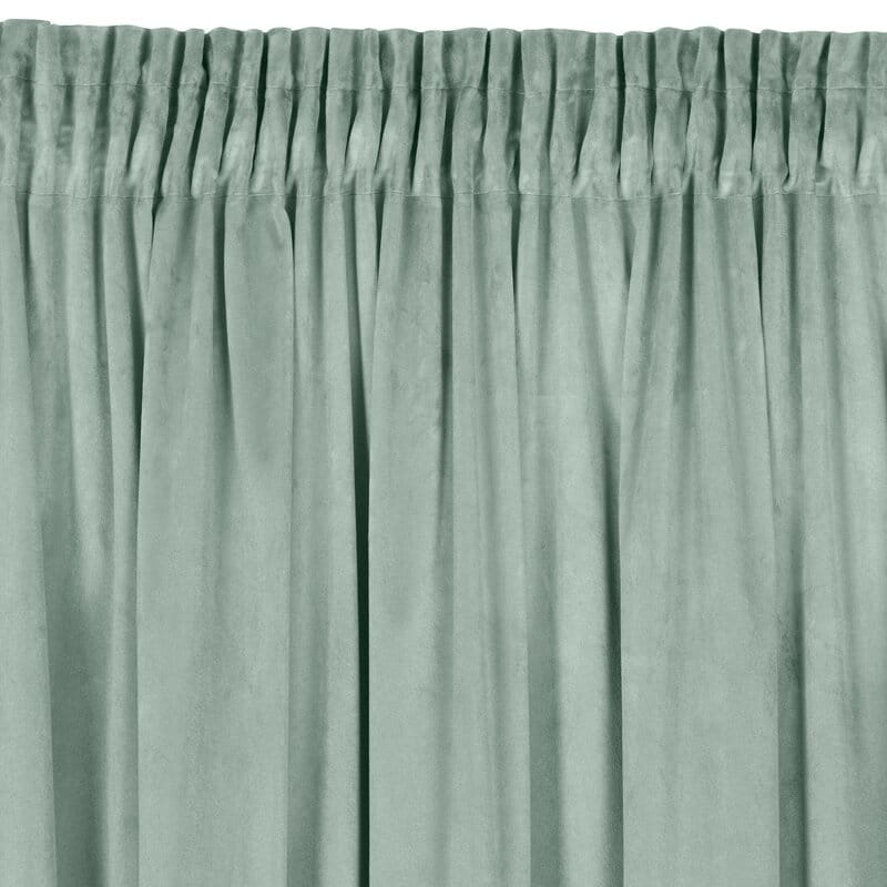 Dodaj wnętrzu wyjątkowy charakter dzięki welurowej zasłonie Rosa w modnym jasno miętowym kolorze z delikatnym połyskiem. Elegancki welurowy splot sprawia, że tkanina jest miękka, aksamitna w dotyku i doskonale układa się na oknie. Gotowa do zawieszenia – uniwersalna taśma marszcząca o szerokości 7 cm, wszyta w górnej części zasłony pozwala dostosować gęstość marszczenia, dzięki czemu tkanina elegancko prezentuje się po zawieszeniu na karniszu. Taśma posiada również tunel, co daje możliwość zawieszenia zasłony na karniszu drążkowym.