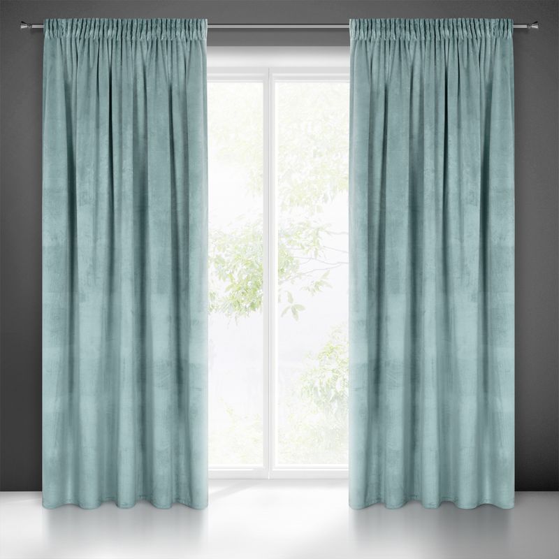 Zasłona 140x270 welurowa Melanie szałwiowa – elegancja i funkcjonalność w Twoim wnętrzu