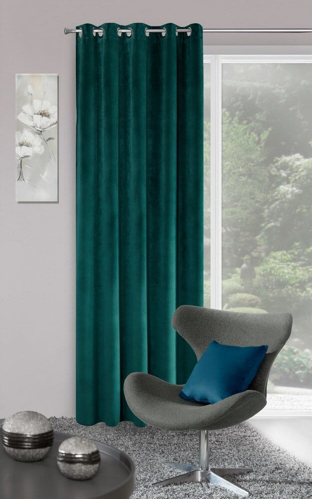 Zasłona zaciemniająca 140x250 Villa ciemna turkusowa gotowa na przelotkach